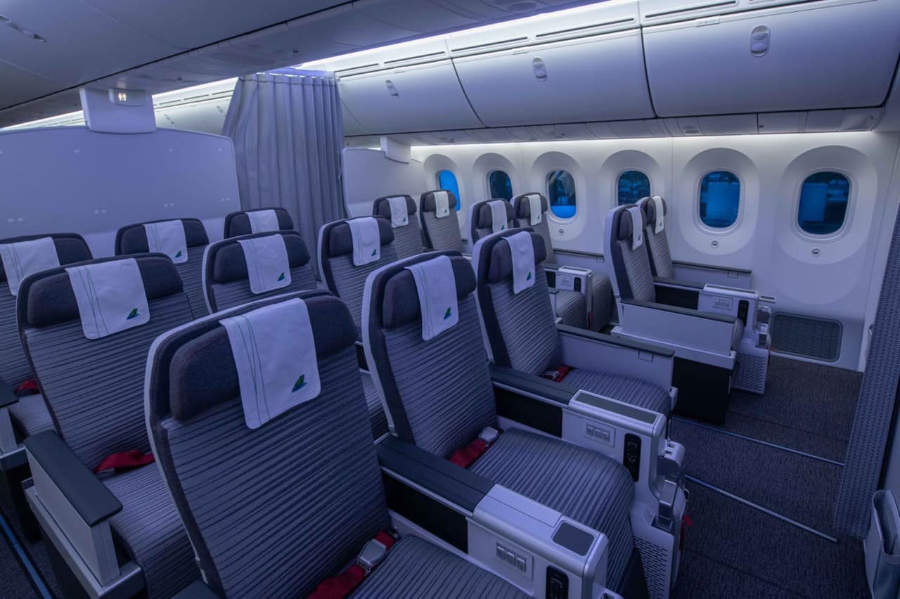 Cabin của máy bay Boeing 787-9 Dreamliner được thiết kế tạo sự tiện nghi tối đa cho hành khách với không gian rộng rãi hơn, hệ thống chiếu sáng sử dụng công nghệ đèn LED, độ ẩm và áp suất trong cabin được giữ tương đương với áp suất ở độ cao 1.8km, giúp giảm bớt mệt mỏi cho các hành khách trên các chuyến bay dài. Ghế ngồi hành khách được thiết kế rộng rãi với độ ngả thoải mái hơn. Ghế hạng thương gia có chế độ giường nằm ngả 180 độ.